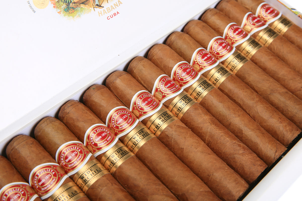 25 cigars in a paper-covered wooden box.